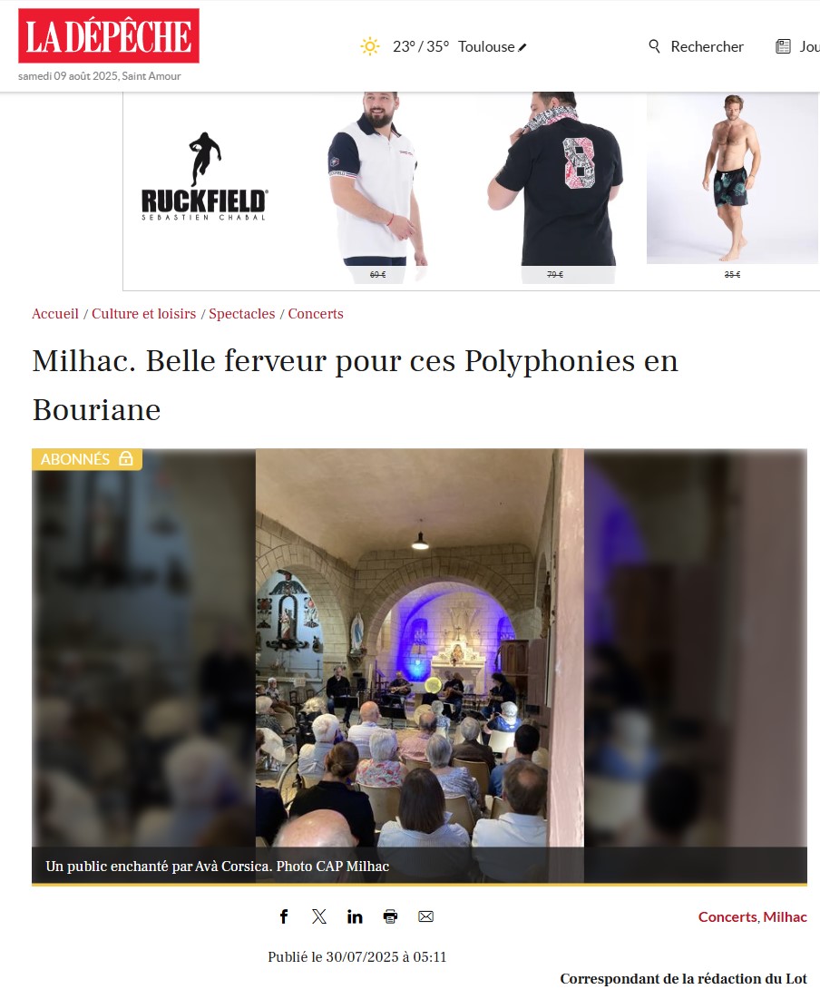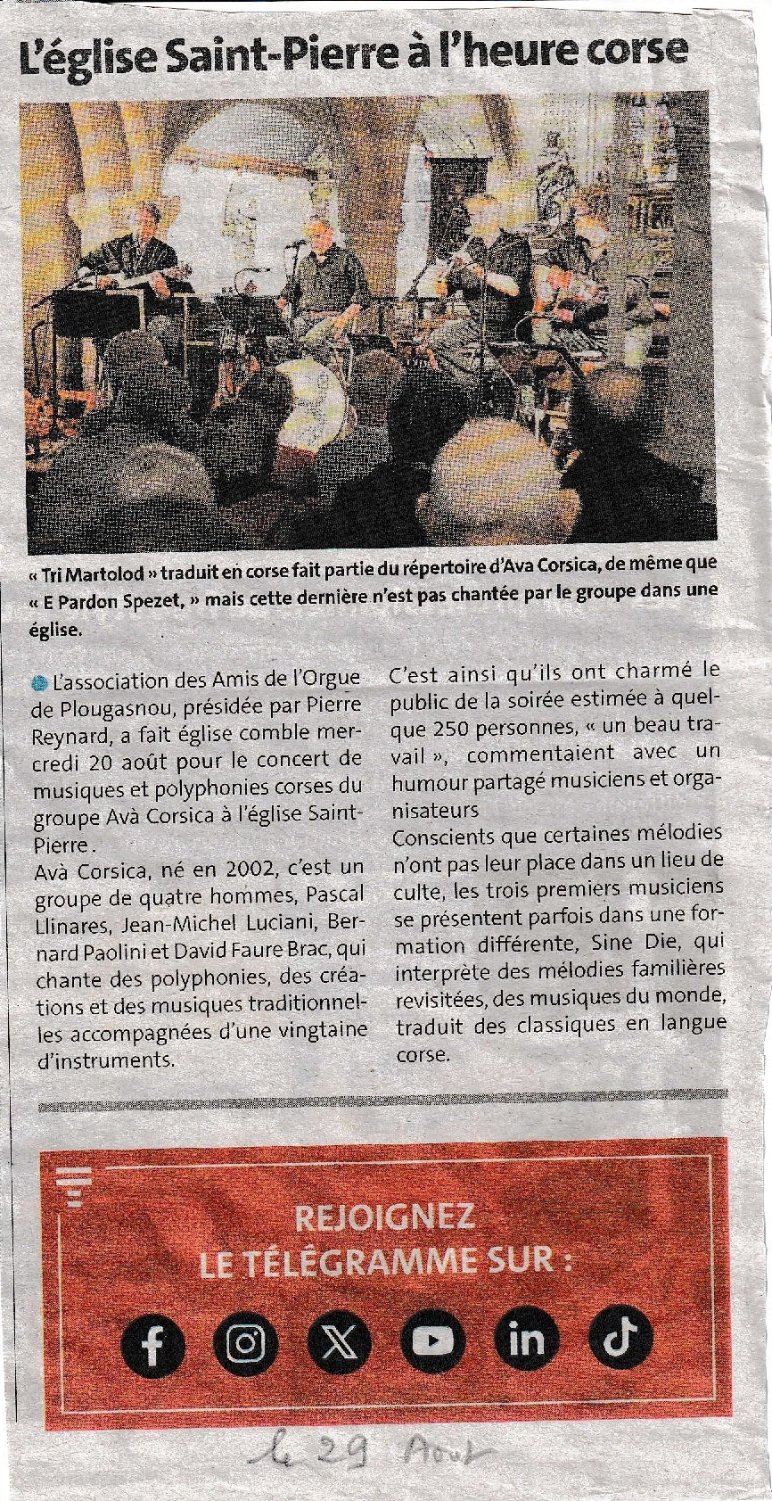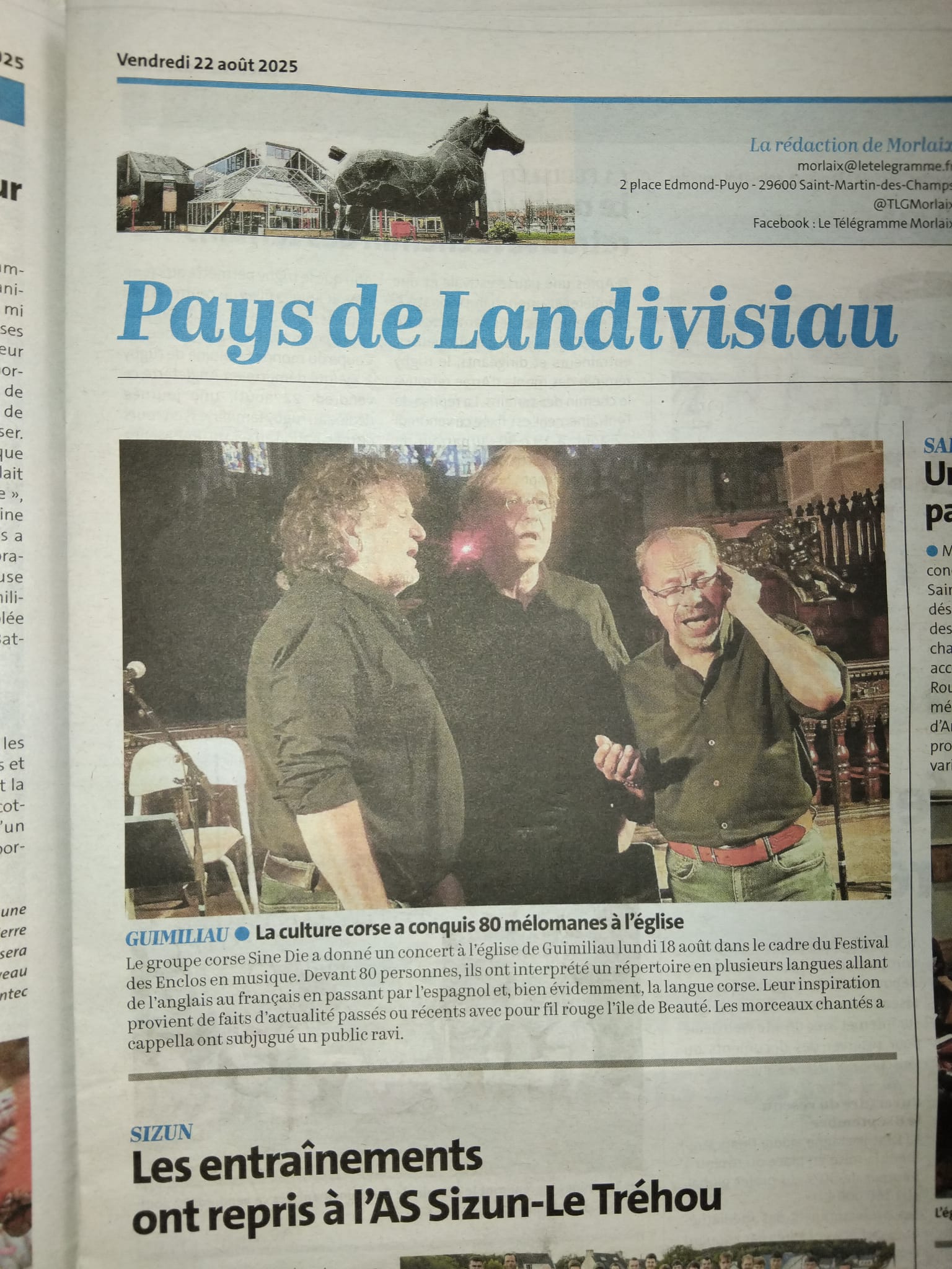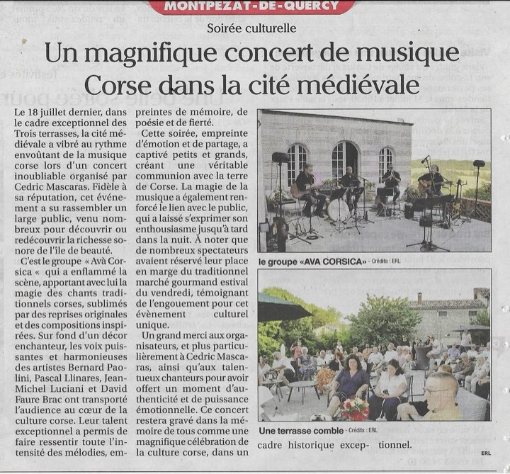 Depuis 2002, notre musique a fait vibrer les cœurs et résonner les pages des médias. Retrouvez ici les articles qui parlent de nous, des critiques aux interviews, témoignant de notre parcours et de notre passion pour les polyphonies corses. »